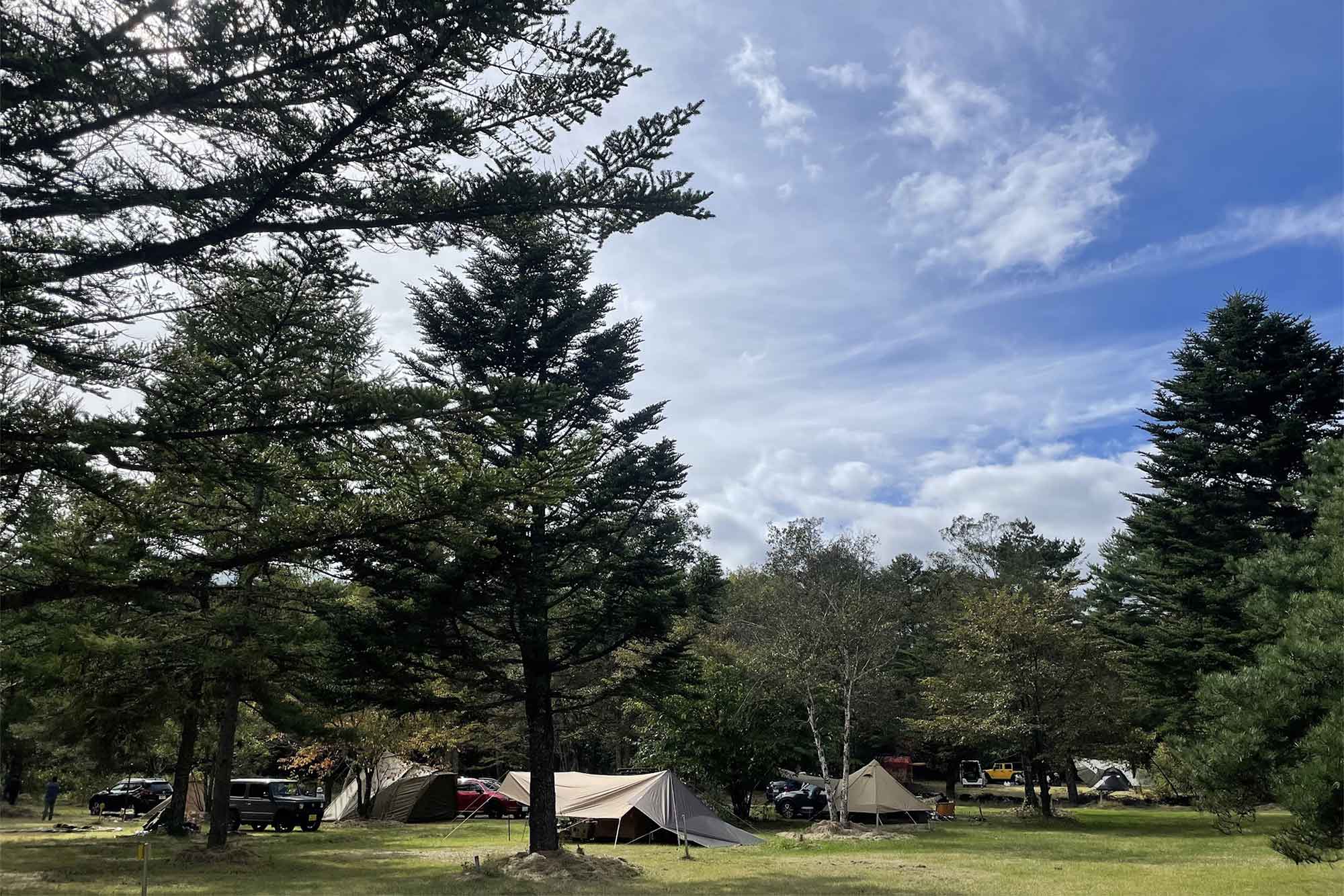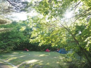 標高約1000m。北軽井沢の澄んだ空気の中、綺麗な芝生・美しい木漏れ日・小鳥に癒される、自然豊かな森と高原のキャンプ場です。周辺には温泉も!
