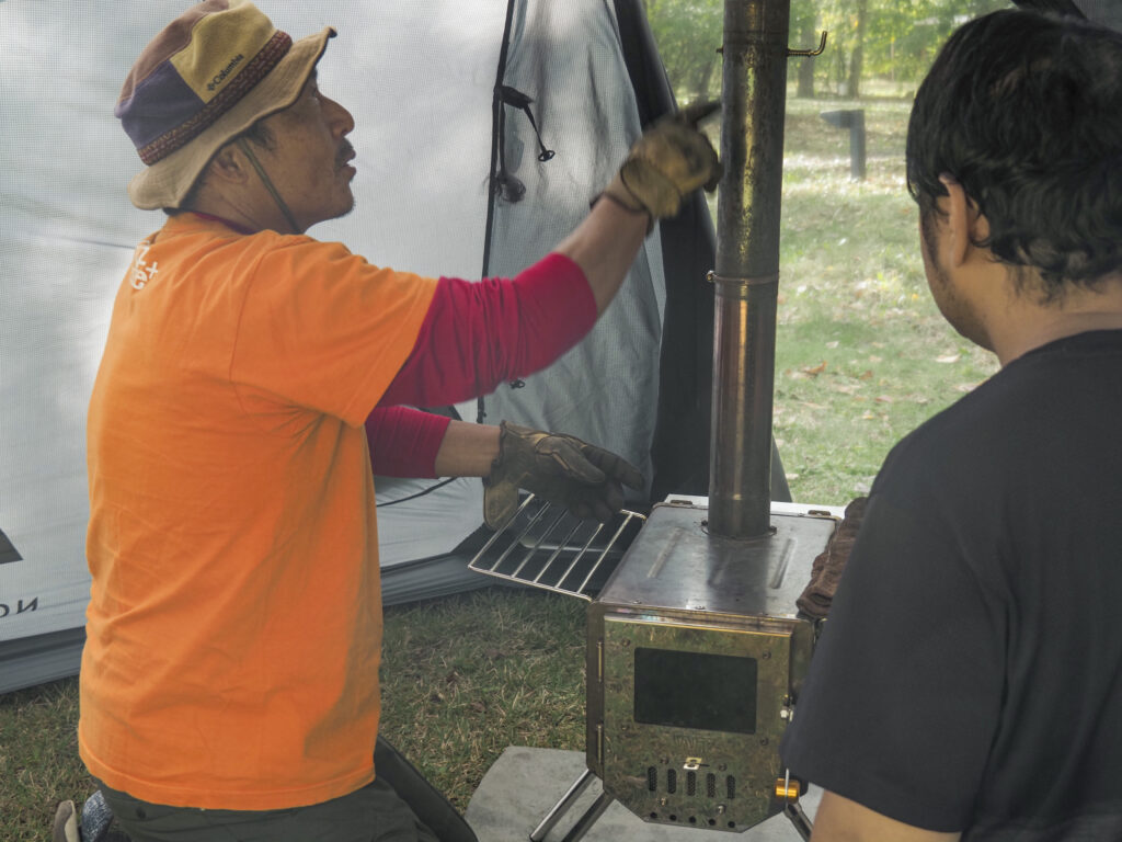 薪ストーブは、tent-Mark DESIGNS の陽だまりストーブ(外から吸気する珍しいアイテム)のほか、WORK TUFF GEARのストーブもご利用いただきました。