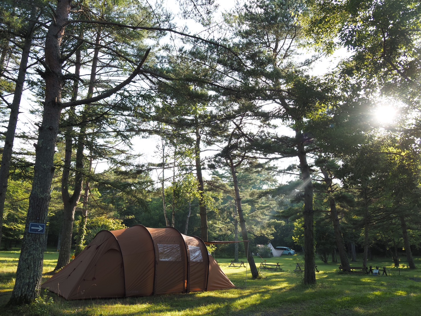 このあたりは、風が抜ける感じも本当に気持ちよく、ただ暑さを避けるための場所というより、自然の中で深呼吸したくなるような場所だと思っています。芝生の上でのんびりしたり、木々を見上げながらコーヒーを飲んだり、そういう何でもない時間がちゃんと気持ちいい。それが高原キャンプの良さです。